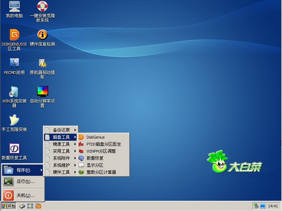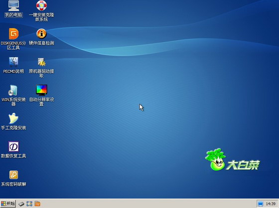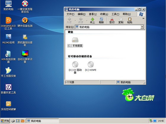 大白菜制作后寫(xiě)入的啟動(dòng)PE系統(tǒng)如下圖: