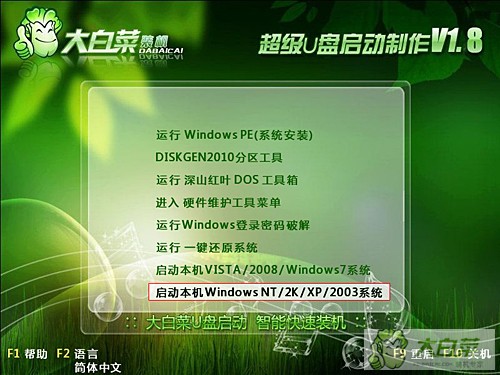 軟件版本: 大白菜U盤啟動制作工具 V1.8(網絡版)