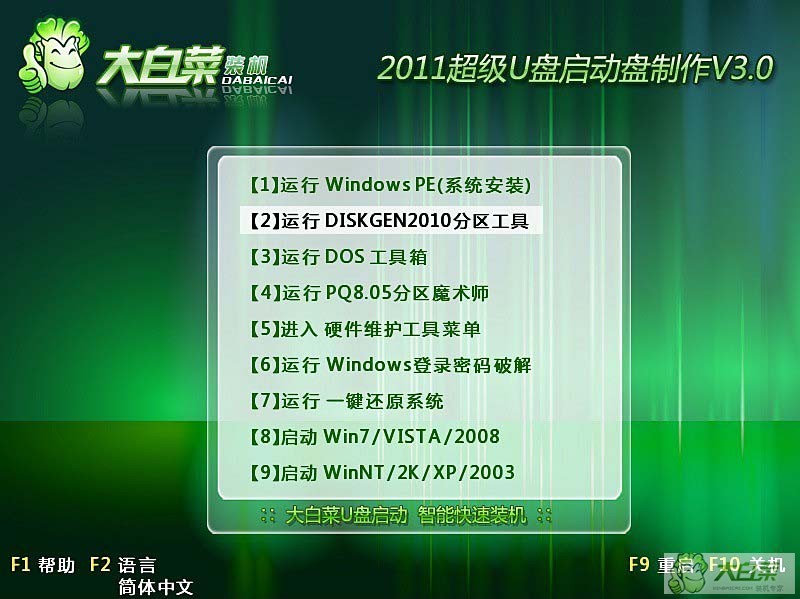 軟件版本: 大白菜超級U盤啟動制作工具V3.0