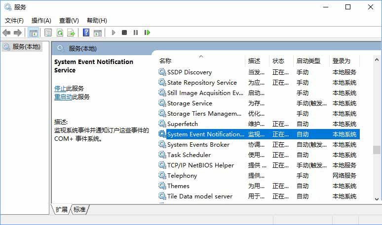 2、找到并雙擊打開 System Event Notification Service,將啟動類型修改為“自動”,點【啟動】-【應用】-【確定】即可;