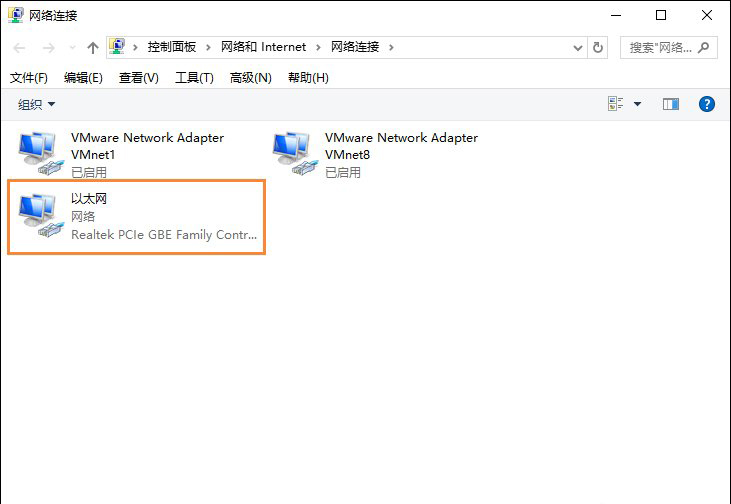 7、之后完成,關(guān)閉窗口,在網(wǎng)絡(luò)連接里面刷新,就可以看見“以太網(wǎng)”(也就是之前版本的“本地連接”)了。