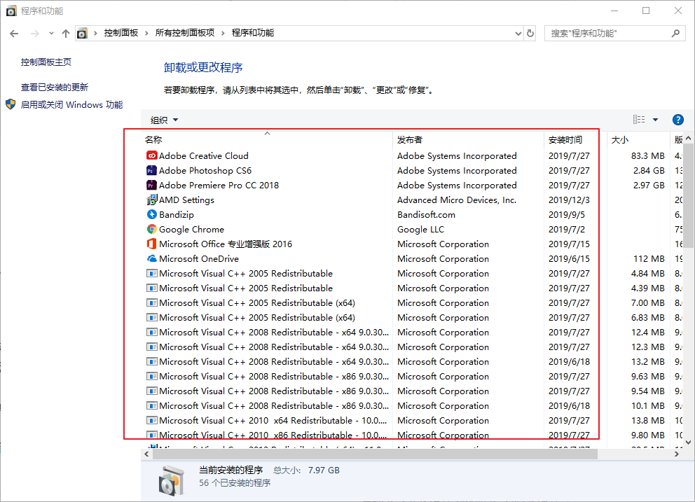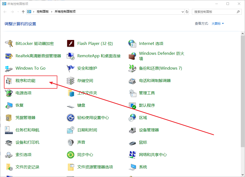 2、進入控制面板后,打開并點擊“程序與功能”