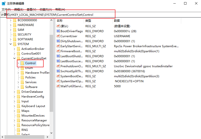 2、按照以下路徑展開至:HKEY_LOCAL_MACHINE\SYSTEM\CurrentControlSet\Control