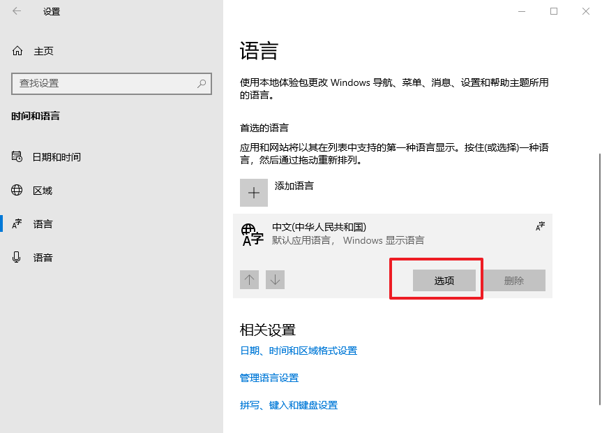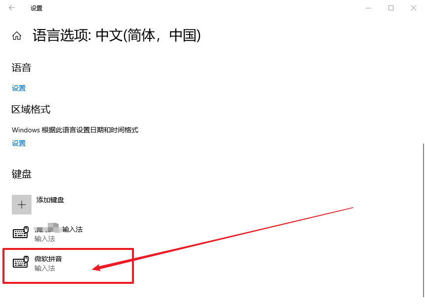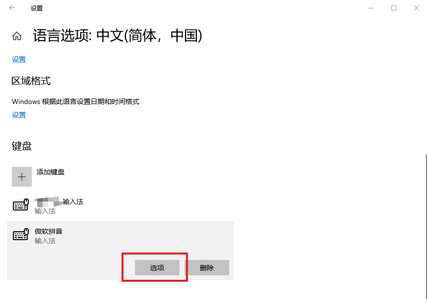5、 進入中文設置頁面后,找到并點擊你需要設置的輸入法,比如“微軟拼音”,再點擊“選項”
