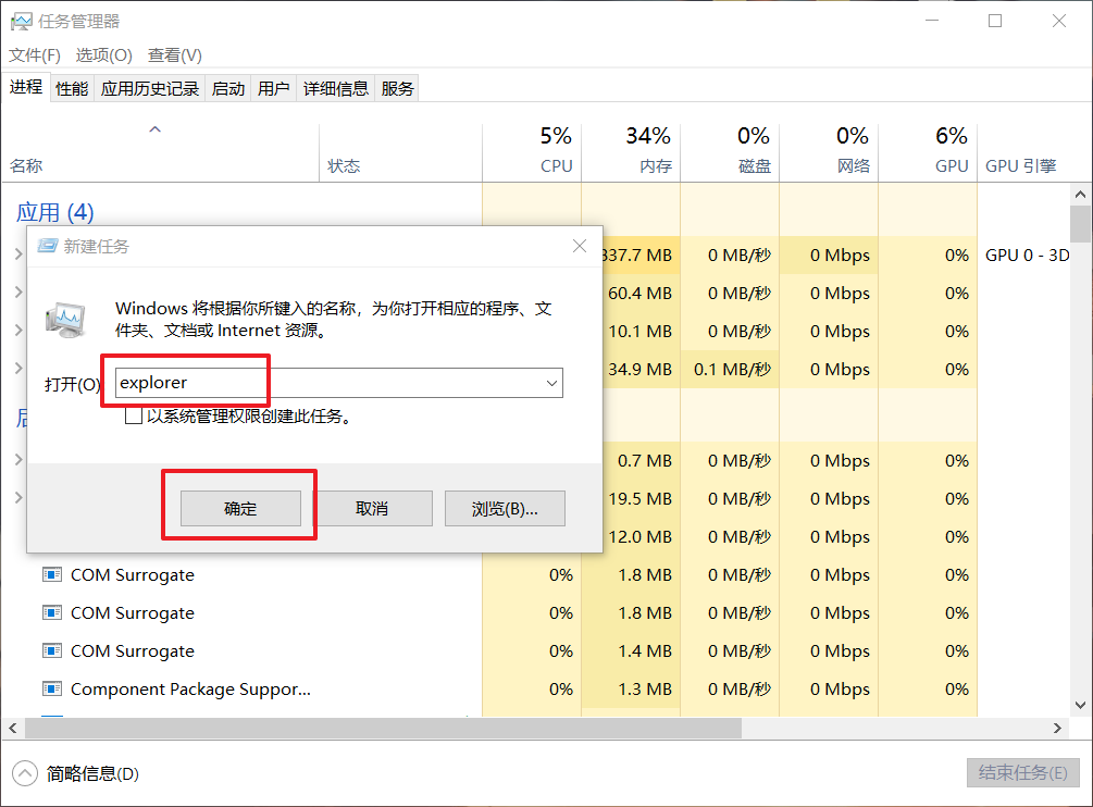 3、在運行命令中輸入【explorer】,按確定完成操作;