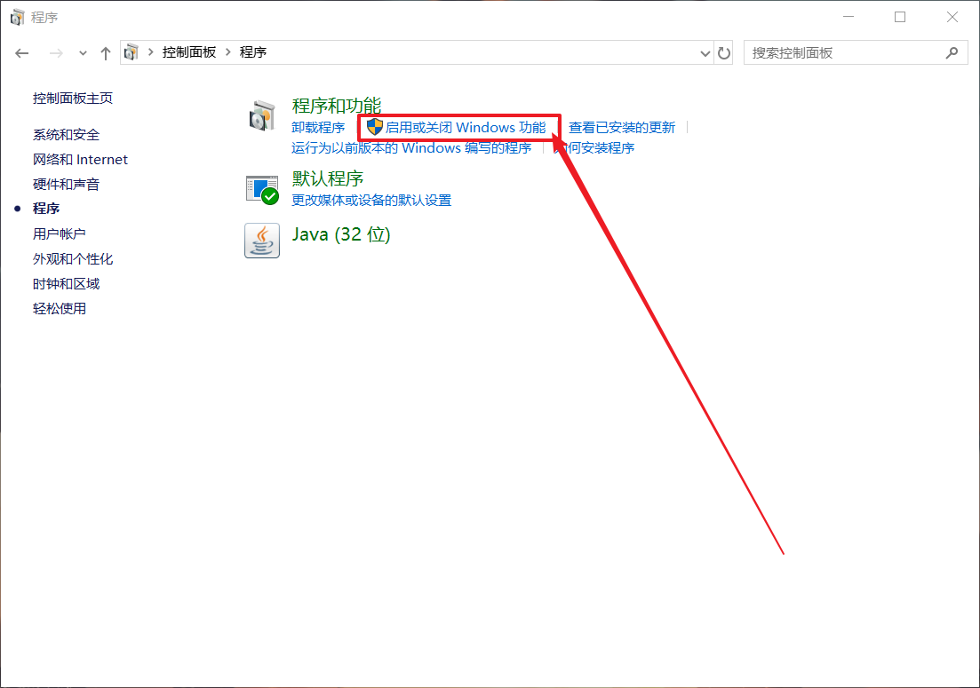 3、 打開程序頁面之后,點擊 “啟用或關閉Windows功能”