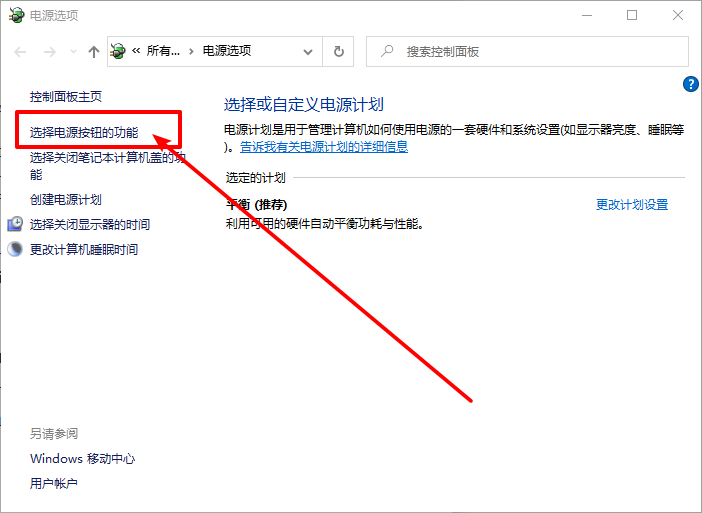 3、點(diǎn)擊頁面的“選擇電源按鈕的功能”
