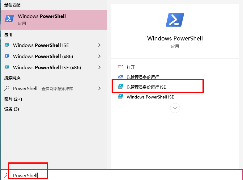 1、在搜索菜單中輸入PowerShell,并選擇以管理員方式運行
