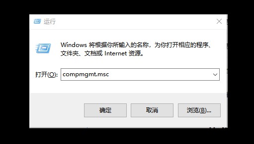 1、同時按住Win+R,然后輸入命令compmgmt.msc,打開管理頁面