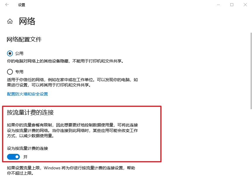 3、在偏下的位置打開(kāi)“設(shè)為按流量計(jì)費(fèi)的連接”;