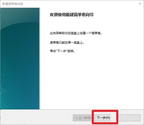 4、 彈出“新建簡單卷向?qū)А表撁嬷螅c擊“下一步”